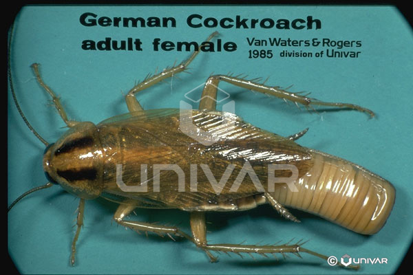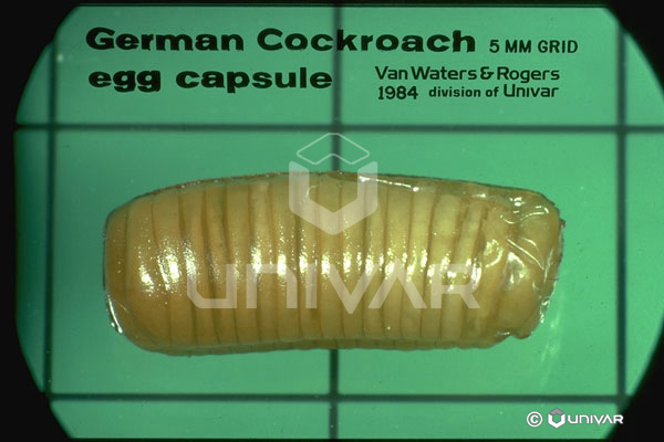 Biology: The German roach is a nocturnal animal, that strongly avoids light, cannot fly, and in almost all situations will be found indoors. Infestations normally begin with the introduction of roaches in packages. The biological potential of this species is enormous, with females producing an average of 5 egg capsules in their lifetime, each with an average of 30 eggs in it. The time from egg to mature adult averages about 3 months, allowing 4 generations of the insects each year. Female adult roaches live for about 200 days. Females carry the egg capsule until one day before the eggs are to hatch, providing necessary moisture into the eggs. Her activity level is low while she is in this “gravid” stage. This species has a higher moisture requirement than many other species and is most likely to live near moisture sources and in humid areas. First instar nymphs often remain in hiding, feeding on the fecal material of other roaches. Older roaches are extremely variable in their diets, feeding on virtually any materials in a food environment. They may also nibble on human hair or fingers and toenails.