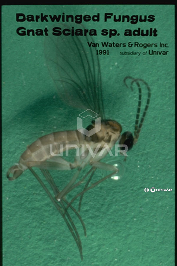 Identification: The sciarid fungus gnats are tiny flies, only 2 to 3 mm long. They are brown to black and have long, thin, pointed abdomens.
